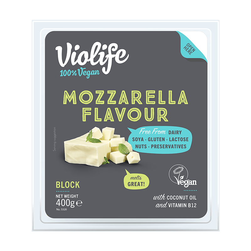 Violife Mozzarella blok kan anvendes præcis som mozzarella da den smelter godt og giver en læller smag!