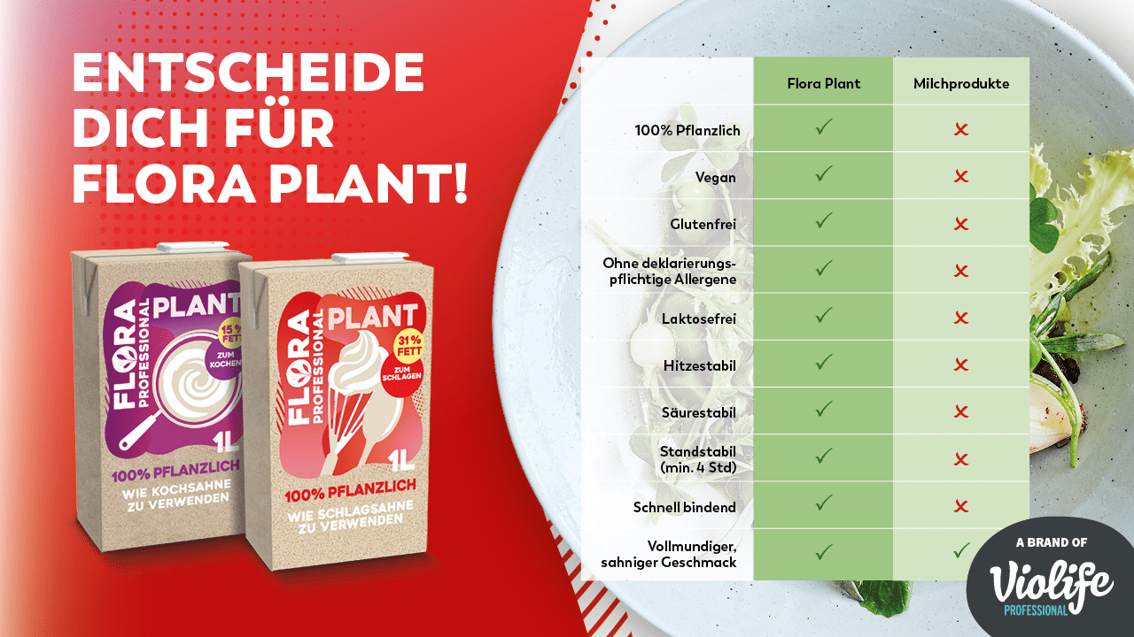 Flora Professional Plant zum Schlagen ist 100% pflanzlich, vegan und frei von Allergenen, Gluten oder Laktose.