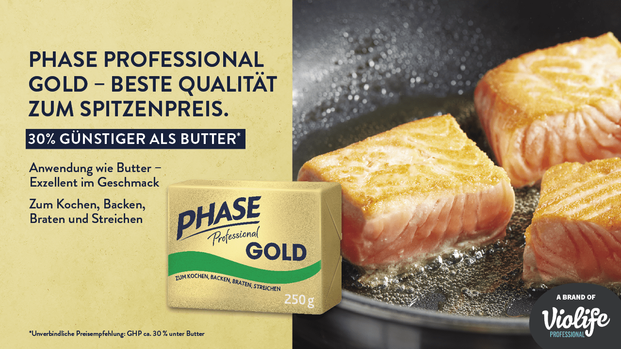 Tauschen Sie einfach Butter mit Phase Professional Gold 1:1 in all Ihren Rezepten aus! Exzellent im Geschmack und in der Anwendung wie Butter. Geeignet zum Kochen, Backen, Braten und Streichen. Auch direkt aus dem Kühlschrank zart streichfähig.