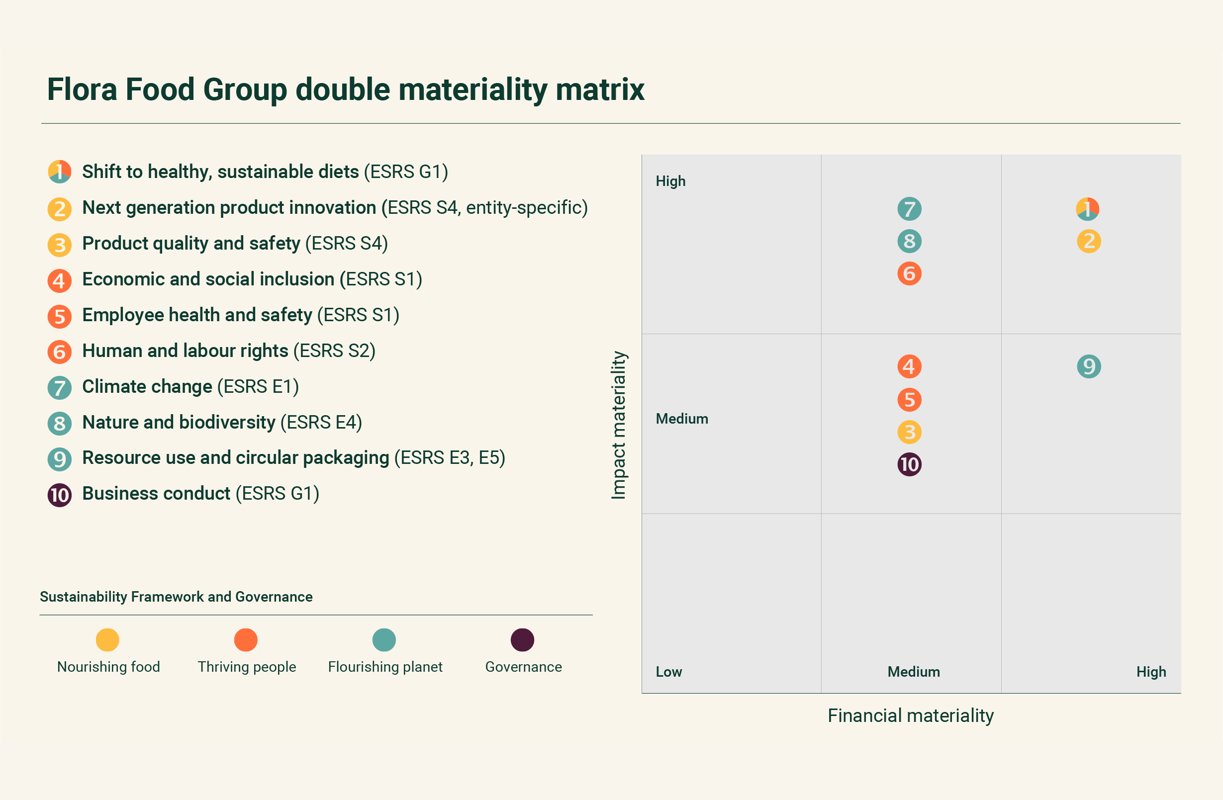 We are committed to driving positive change within the global food system and work hard to cultivate relationships with: suppliers, non-governmental organisations (NGOs), industry advocacy groups, Flora Foodies, consumers, investors, strategic partners, governments, communities and customers. We seek to act responsibly, fairly and transparently in our interactions along our value chain. For more information see the Annual Report 2024.