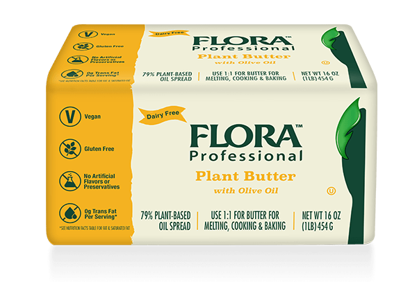 Introducing Flora Professional Plant Butter with Olive Oil: a high performance blend of plant-based oils with exceptional buttery taste and superior performance.