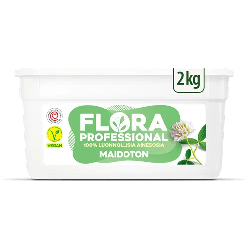 Voi on aina ollut hyvää, mutta tämän päivän vieraiden allergeeni- ja ruokavaliotarpeet ovat muuttumassa. Flora Professional 100 % kasvipohjainen vaihtoehto voille korvaa 1:1 maitotuotteet ja tarjoaa tasaisen laadun ja voin maun, joka yllättää kaikki vieraasi. Voit käyttää sitä soseuttamisesta ja kypsentämisestä leivontaan ja levittämiseen kaikkiin tärkeisiin voisovelluksiin tinkimättä astioistasi. Nyt 2,5 kg:n pakkauksessa, joten voit yksinkertaistaa työtä ja valmistaa maidottomia ruokia suuressa mittakaavassa.