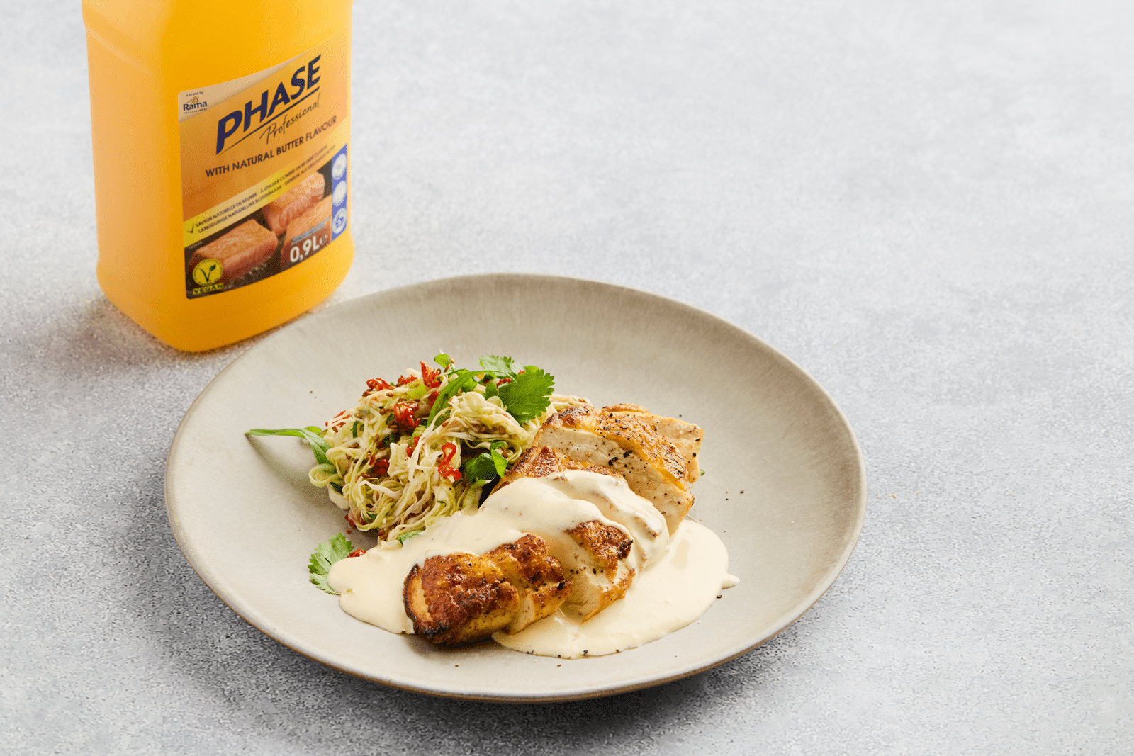Le filet de poulet poêlé, salade de chou pointu thaïe et sauce hollandaise au miso est un plat fusion moderne qui associe la technique classique française à des saveurs asiatiques fraîches et équilibrées. Le poulet jaune, doré à la perfection dans Phase, est accompagné d’une salade de chou pointu croquante relevée de citron vert, de sauce poisson et de sésame. La sauce hollandaise au miso apporte une profondeur umami et une belle onctuosité, tout en restant 100 % sans lactose grâce à Phase. Une recette idéale pour les restaurants et bistros à la recherche d’inspiration contemporaine, performante et adaptée aux exigences de la cuisine professionnelle.