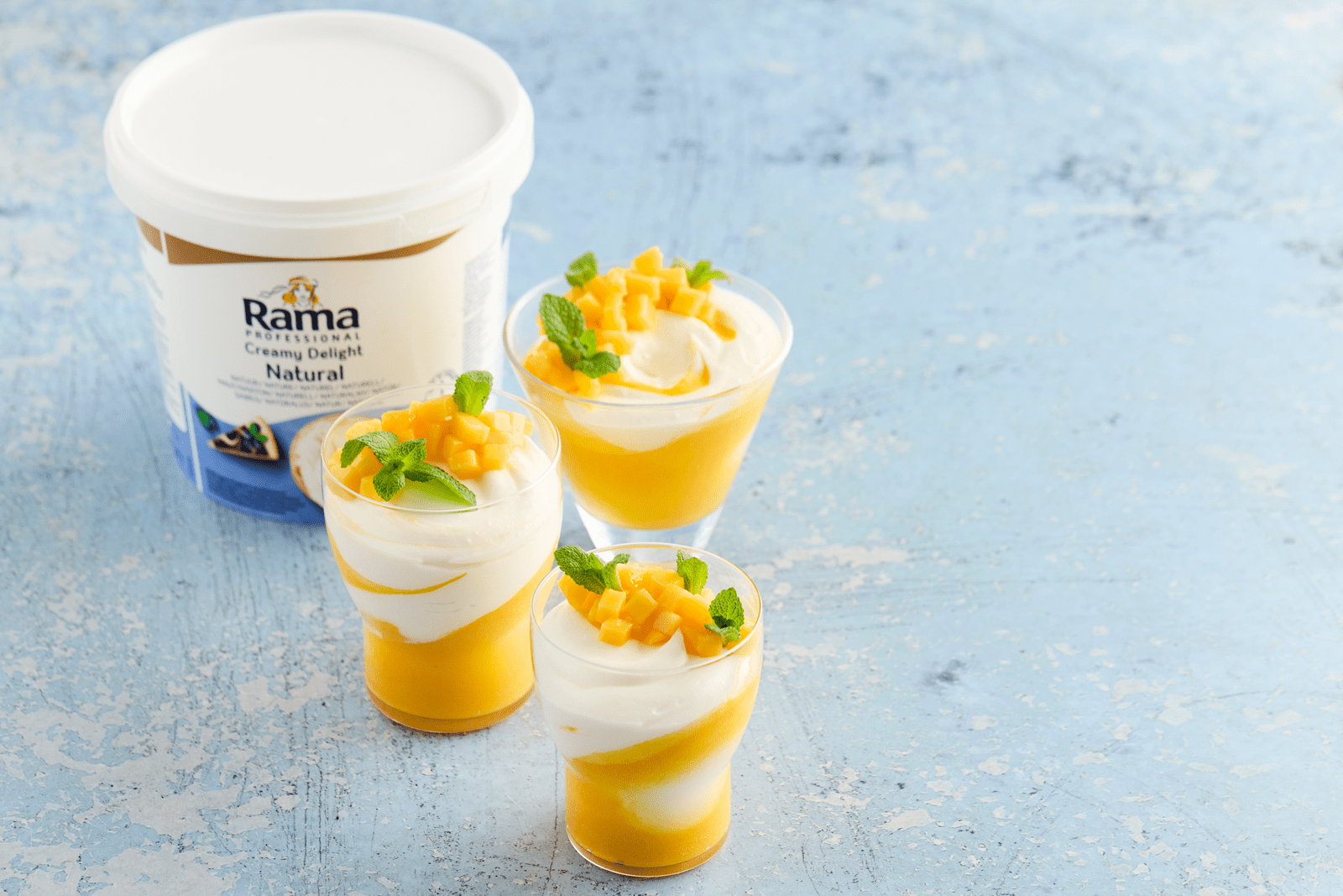 Professioneel mango‑passievrucht dessert met stabiele Rama‑mousse en frisse curd. Perfect voor mise‑en‑place, snelle service en elegante presentatie. Ideaal voor professionele chefs die op zoek zijn naar een elegant, modern dessert met consistente kwaliteit en ruimte voor creatieve afwerking.