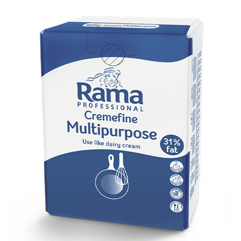 Rama Professional Koken & Opkloppen 31% vet box 10L is een roomvervanger met 31% vet op basis van karnemelk en plantaardige oliën. Deze roomvervanger geeft snelle binding, opgeklopt tot 2,5 keer meer volume en is daardoor uitstekend te gebruiken als basis of ingrediënt in soepen, sauzen, desserts of als slagroom. Stabiel bij hoge temperatuur, au bain-marie (schift niet en vormt geen vel) en geeft ook een stabiel resultaat in gerechten met zuren of alcohol. Te gebruiken als ongezoete room, maar tijdens het opkloppen kan eenvoudig suiker en/of vloeistof worden toegevoegd. Rama Professional Koken & Opkloppen 31% vet box 10L is glutenvrij en geschikt voor een vegetarische voeding.
