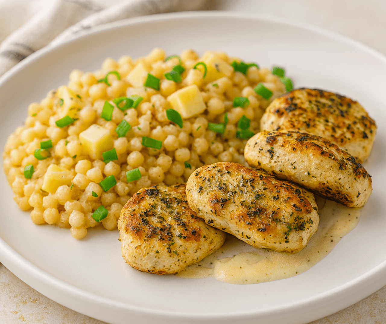 Šťavnaté kuřecí medailonky pečené na Rama Culinasse podávané s jemnou tarhoňou a krémovou cheddarovou omáčkou z Flora Plant krému a Violife Cheddar. Moderní recept s plnou chutí a rostlinnými alternativami, ideální pro profesionální kuchyni i atraktivní menu.