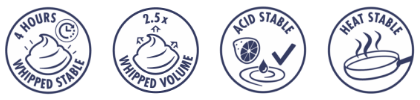 Rama Professional bidrar till en fyllig och krämig smak. Den skär sig inte med syra, alkohol eller höga temperaturer. Vid vispning skapar det 2,5 gånger sin egen volym och ett skum som håller sig stabilt länge.