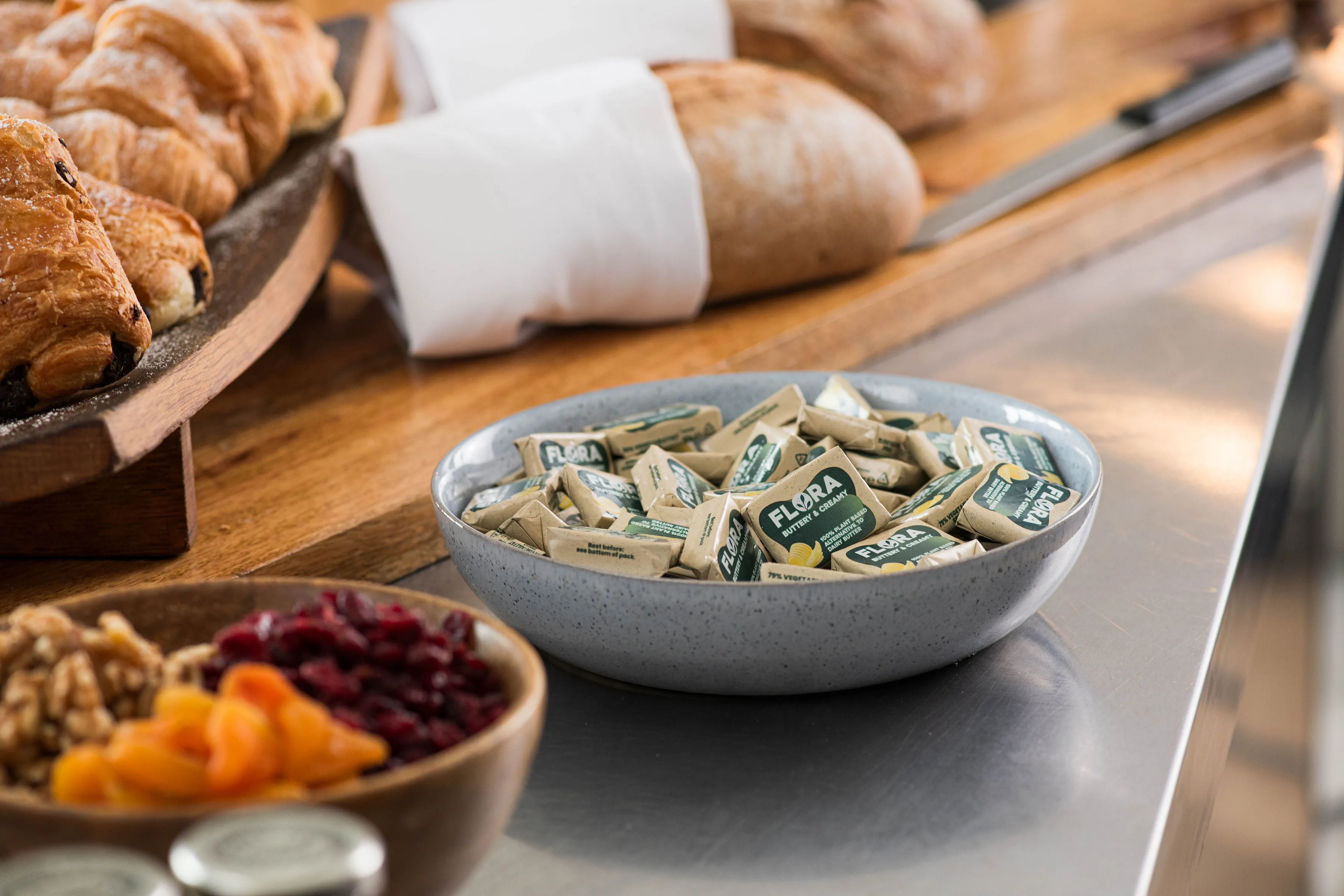 **Livscykelanalysverktyg (utvecklat av Quantis) som jämför Flora och smör (2024). För att hitta procentsats i ditt land, se flora.com
